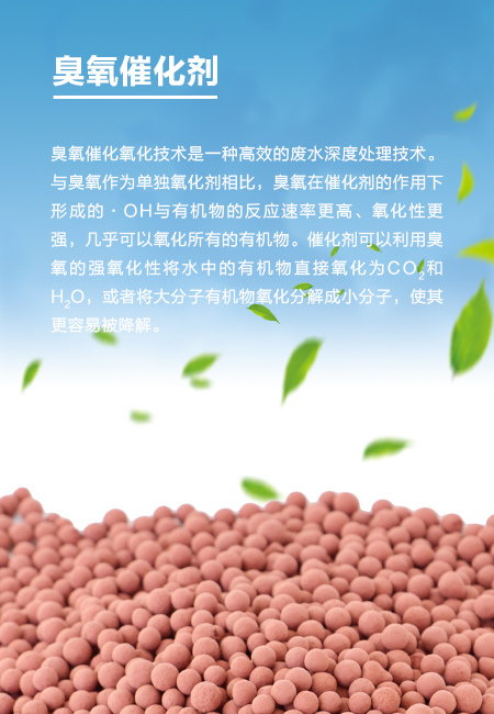 主要由反應器主殼體、專有塔內組件及專有臭氧催化劑填料組成。專有塔內組件實現了臭氧氣體與廢水的高效混合,結合我司研制的專利臭氧催化劑系列產品,